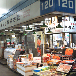 神戸市中央卸売市場本場内に神戸市認可の仲卸業として1963年より営業。多くの飲食店、ホテル・宿泊施設、鮮魚店など幅広くご愛顧いただいています。