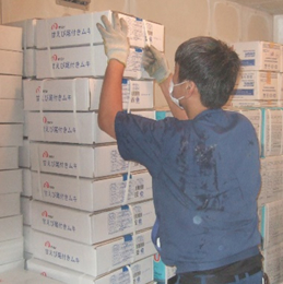 多種多様な業務用冷凍魚貝類を第一倉庫、第二倉庫および市場内営業倉庫に備えており、ご来店のお客様の注文にスピーディーにお応えします。
